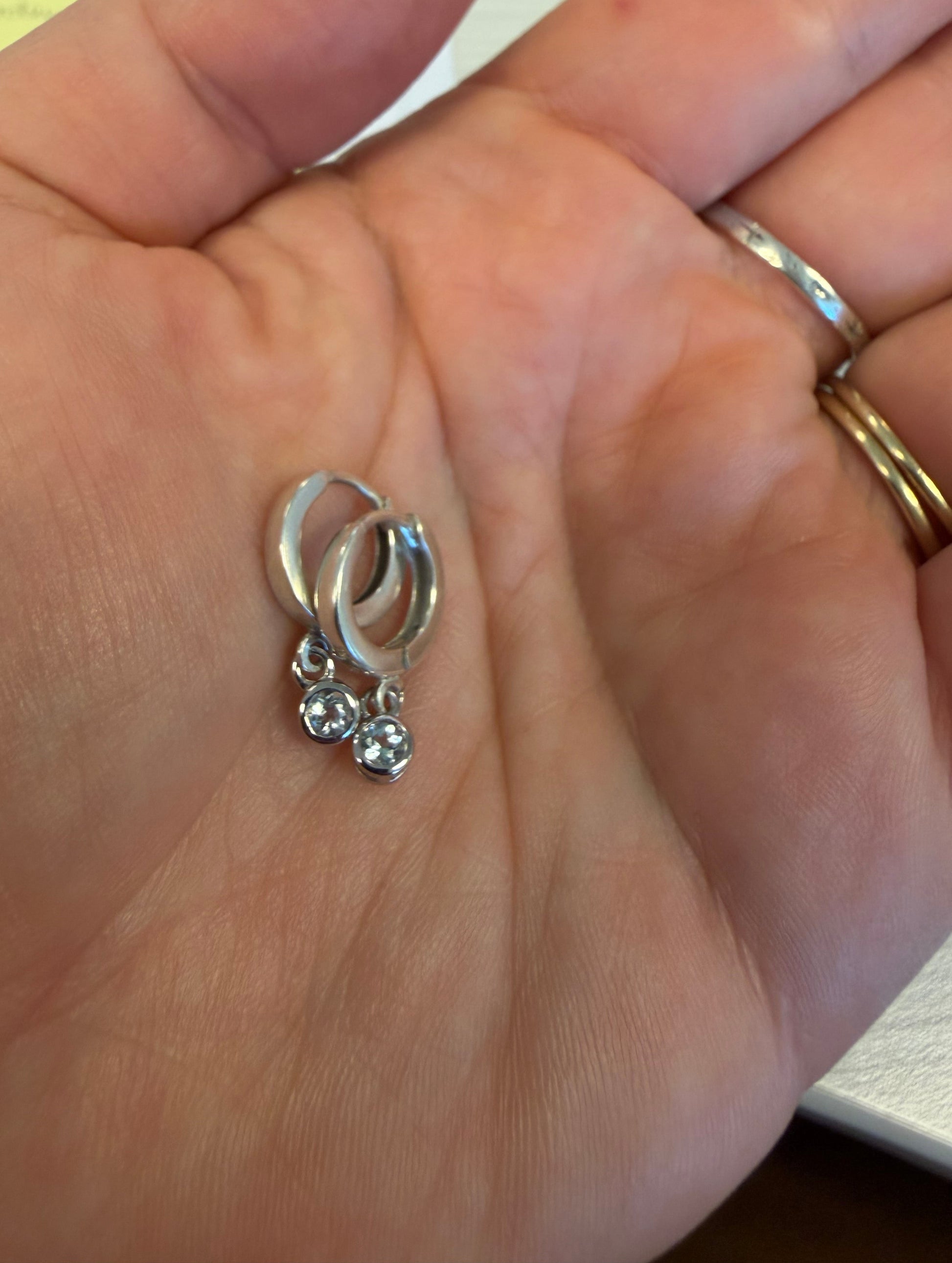 Dainty, minimalist huggie hoops with 3mm natural aquamarine drops. These are easy and comfy to wear every day with almost any outfit. Aquamarine is the march birthstone, but I happen to be a big fan regardless, it just goes so well with sterling silver, don’t you think?