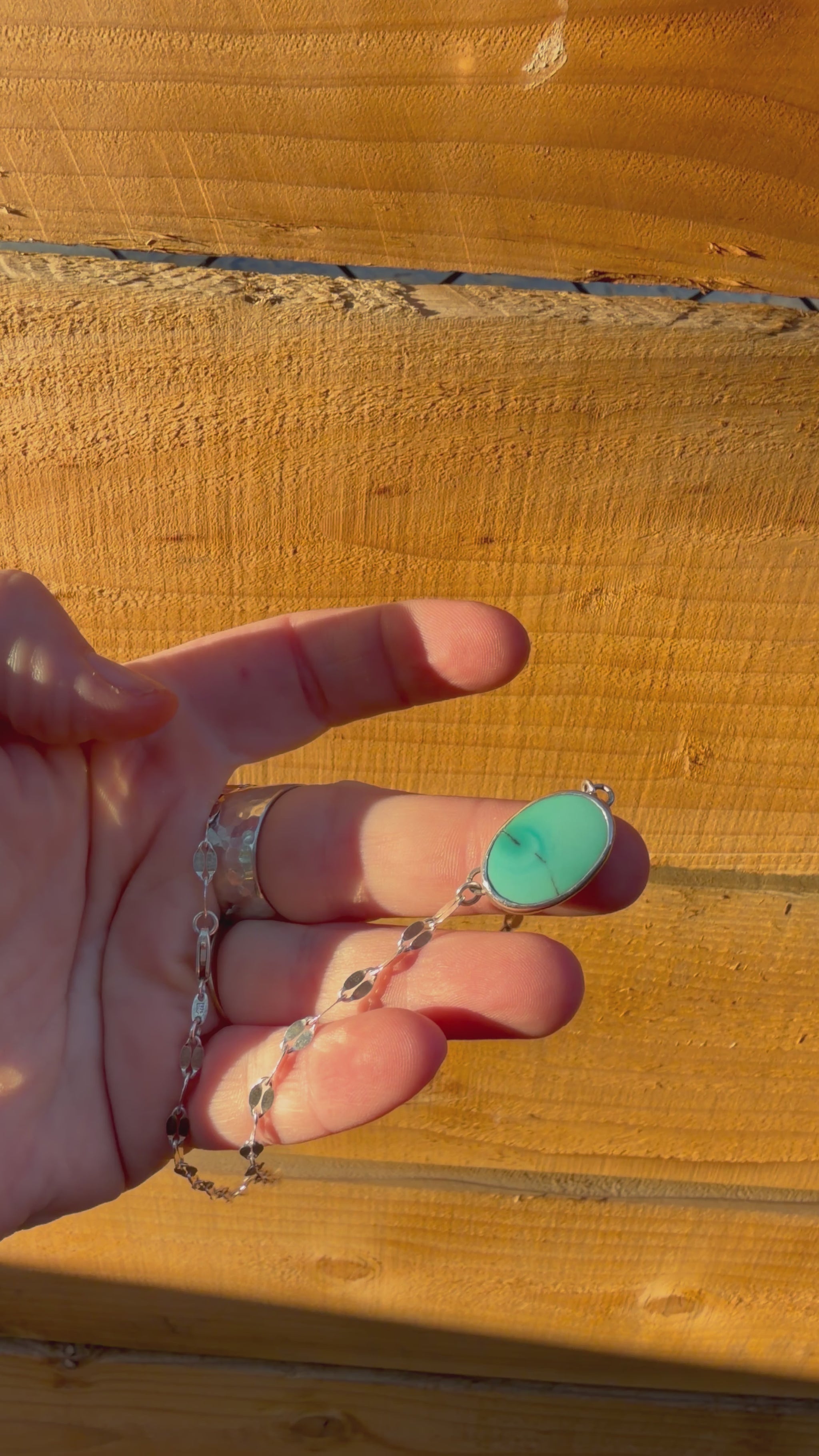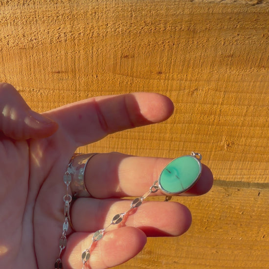 Turquoise Pendant cut by Utah local "The Blue Rock Guy" set in sterling silver on a sterling silver dapped chain - 17 inches.